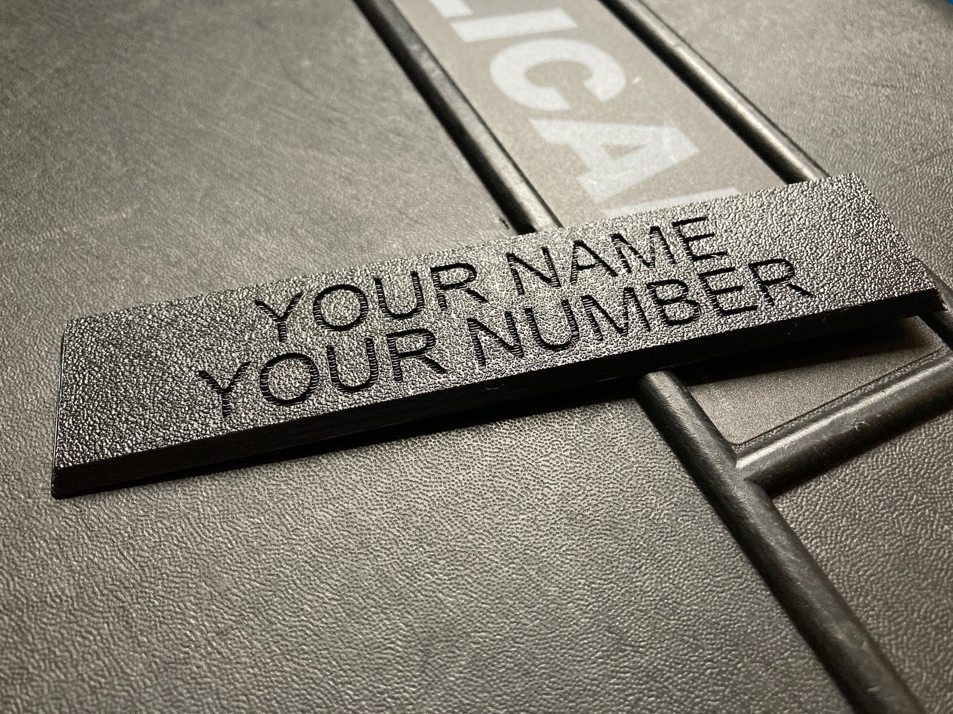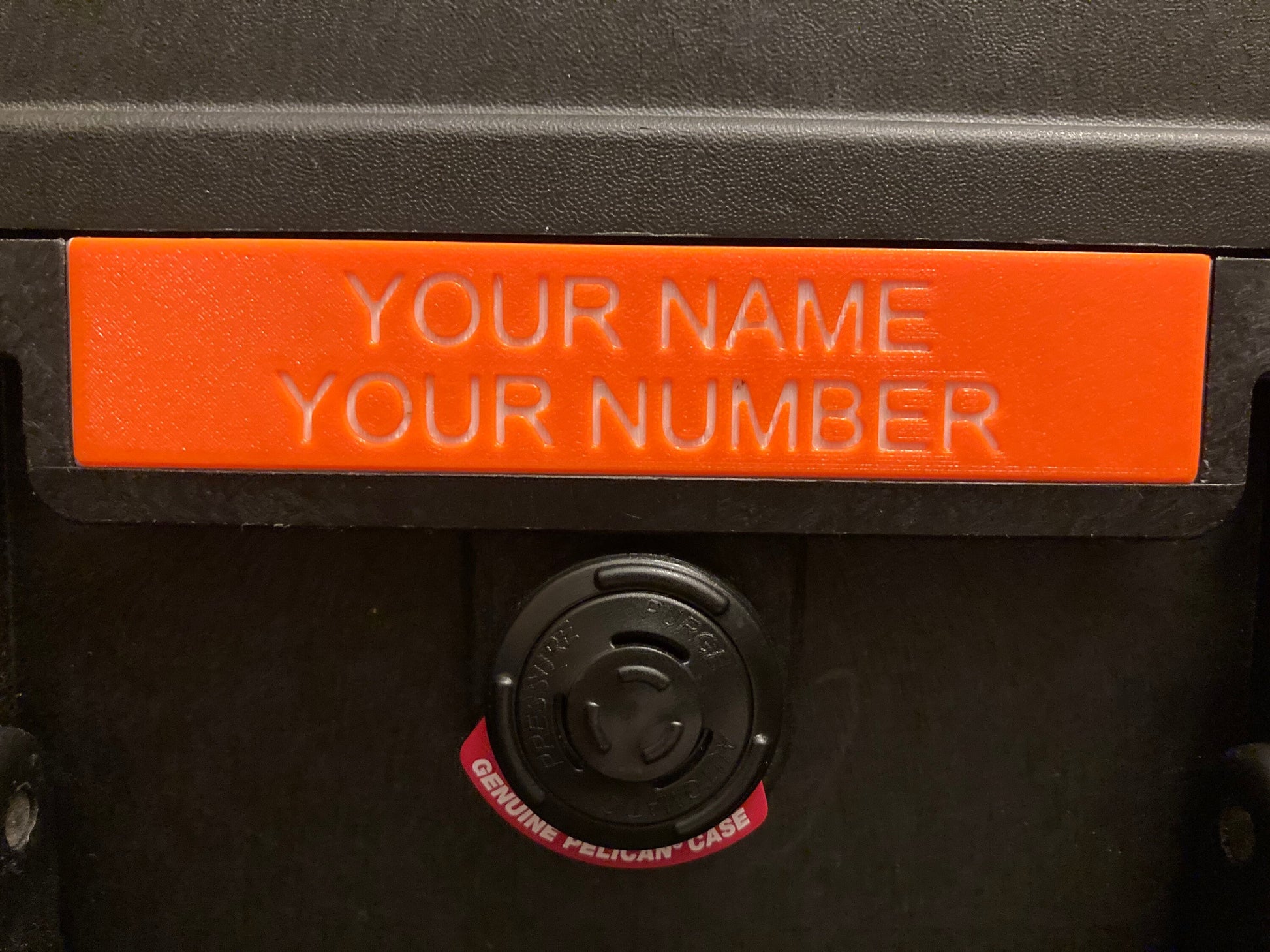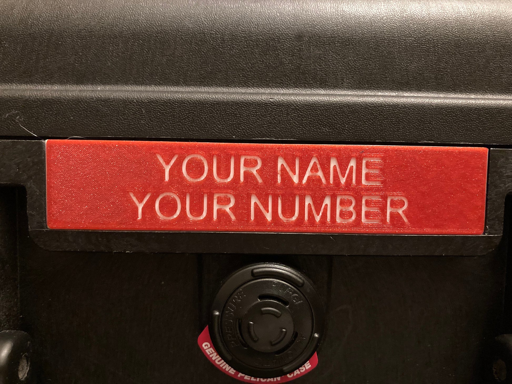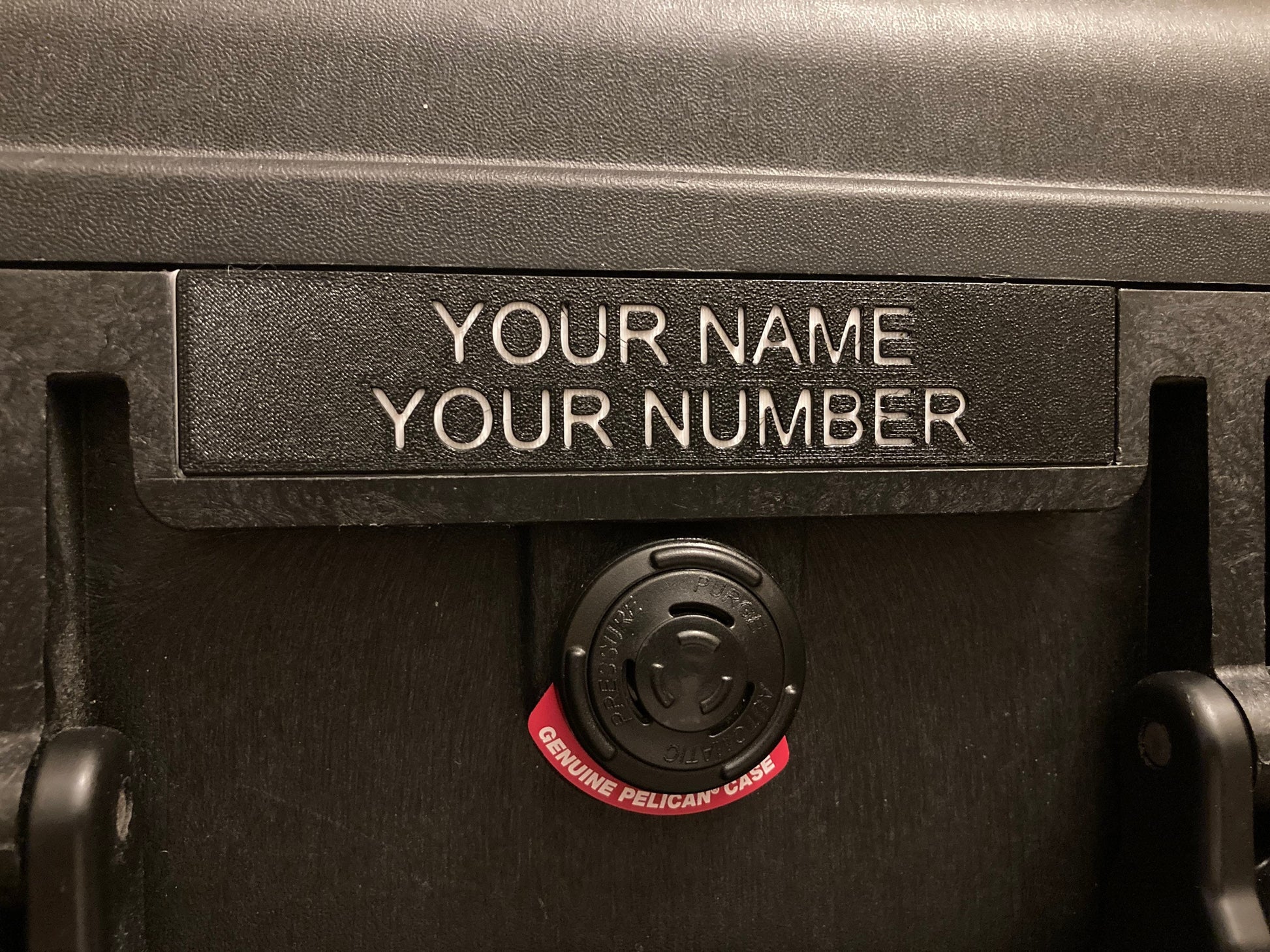 **IT HAS COME TO MY ATTENTION that newer Pelican 1510 cases have slighting longer nameplates. If you have access to a micrometer or ruler, please let me know if your name plate blank is 120mm or 123mm long (from left to right). This will prevent delays.