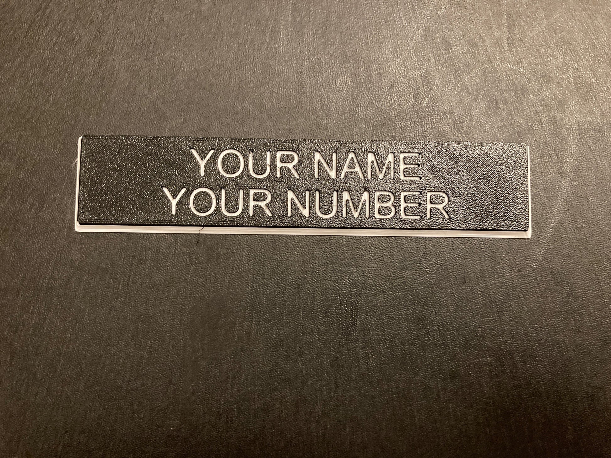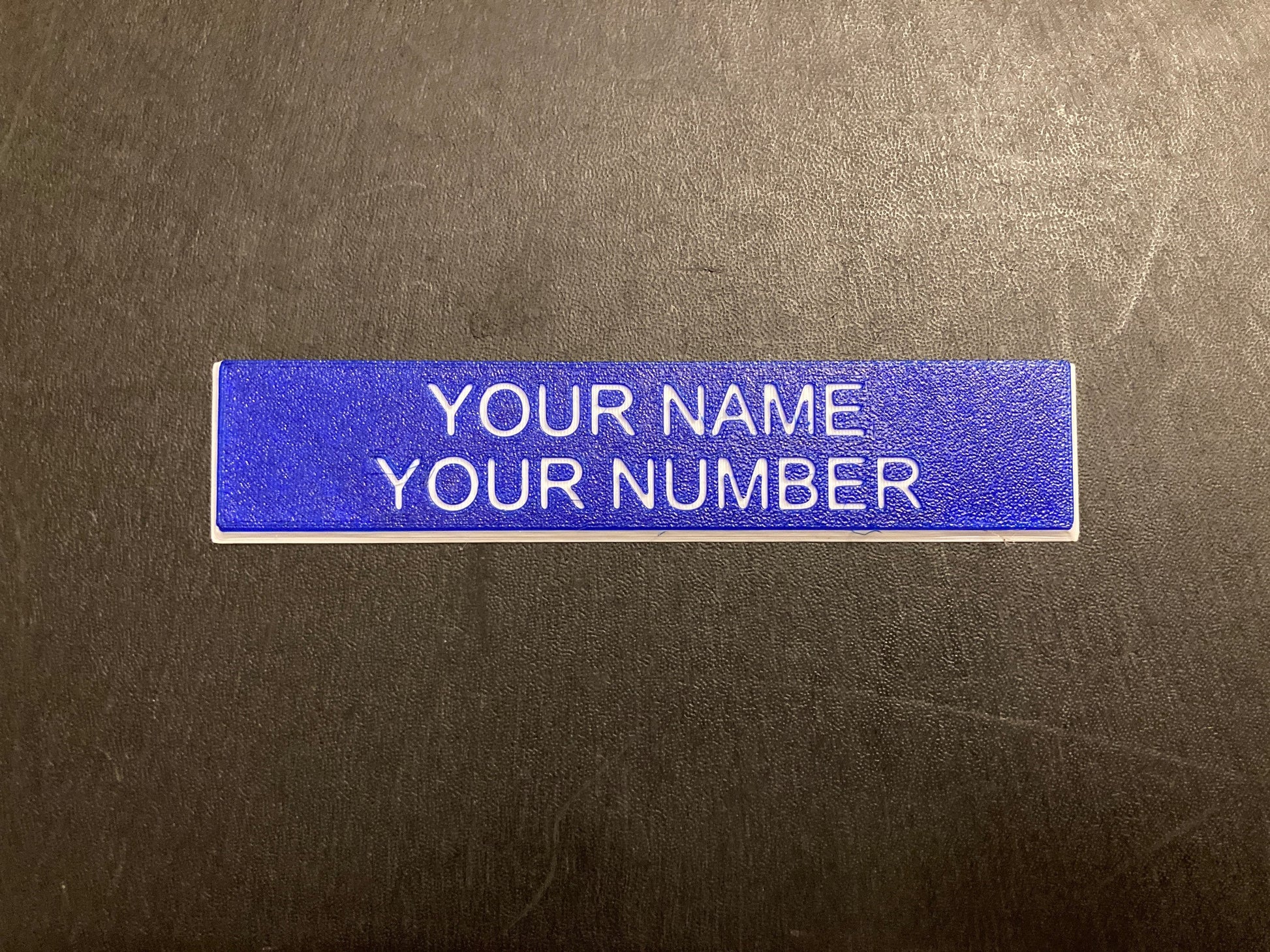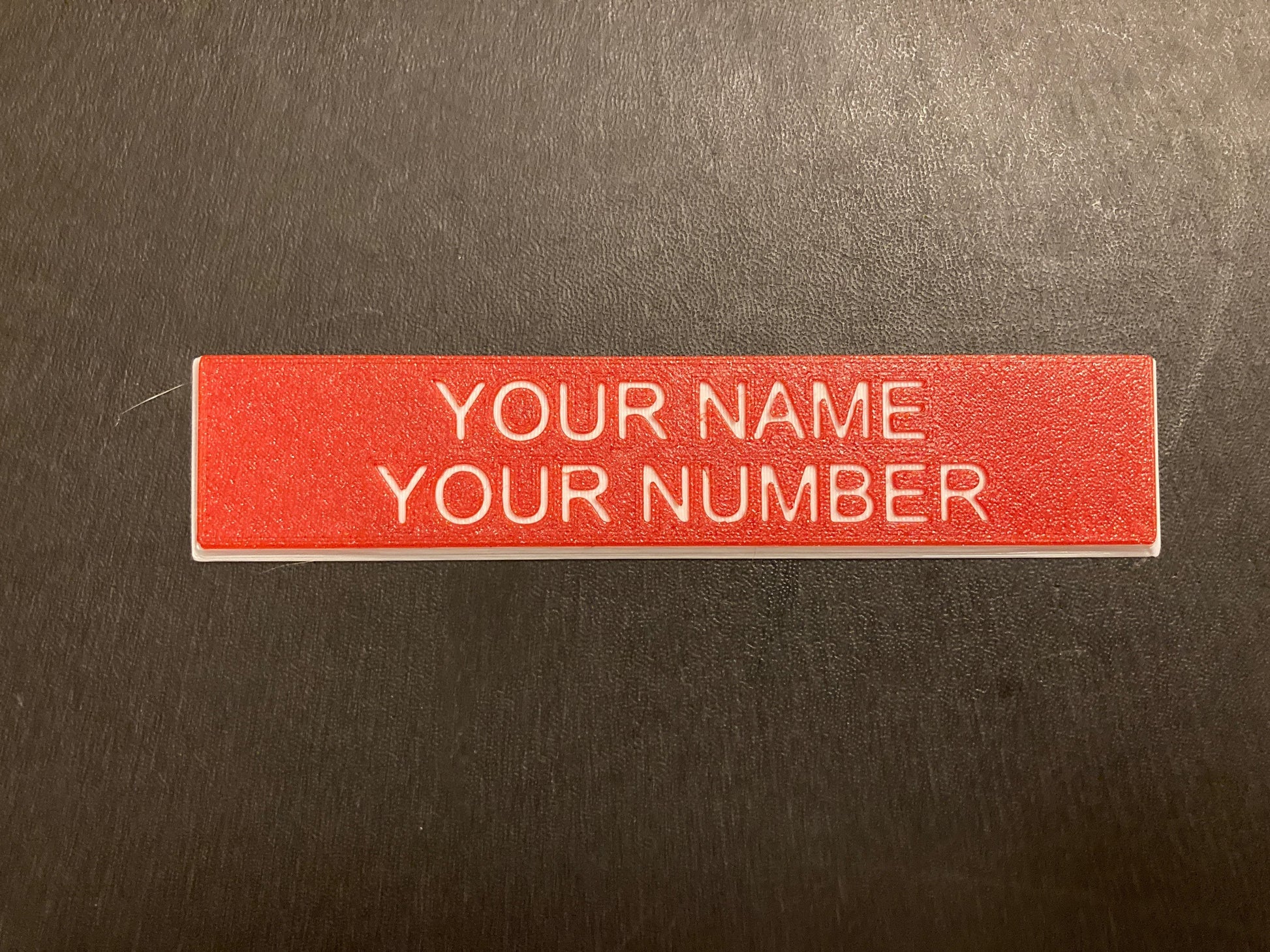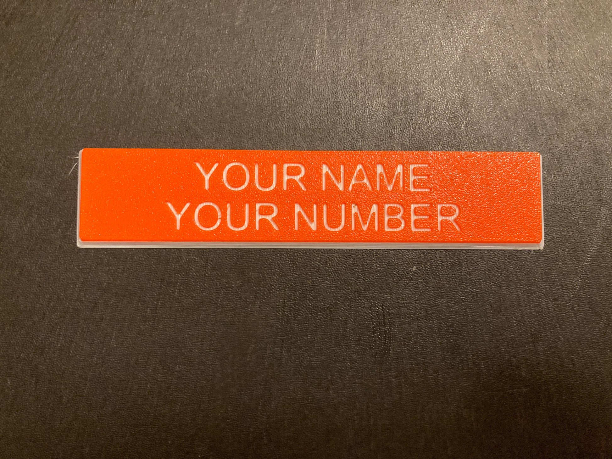 Name plate is made of two colors: the Primary color is the color on the top layer. The secondary color is the color on the bottom half of the nameplate-this color will be the text color. See pictures for examples.