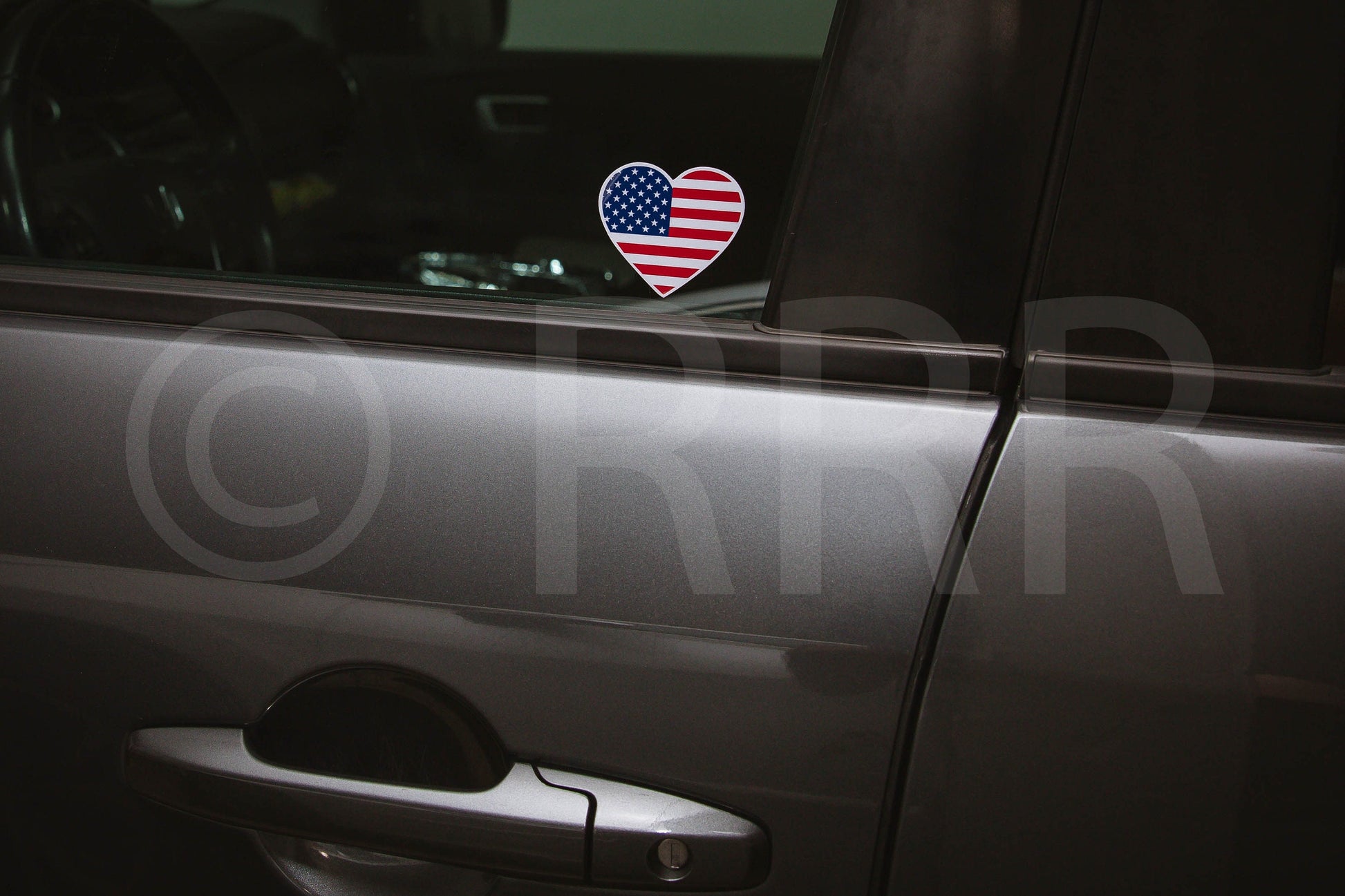 Heart-shaped USA Flag Vinyl Decals are made of full color vinyl(not layered). Measures ABOUT 2.21 inches tall, depending on the height chosen. The decals are about 6-7mil in thickness.